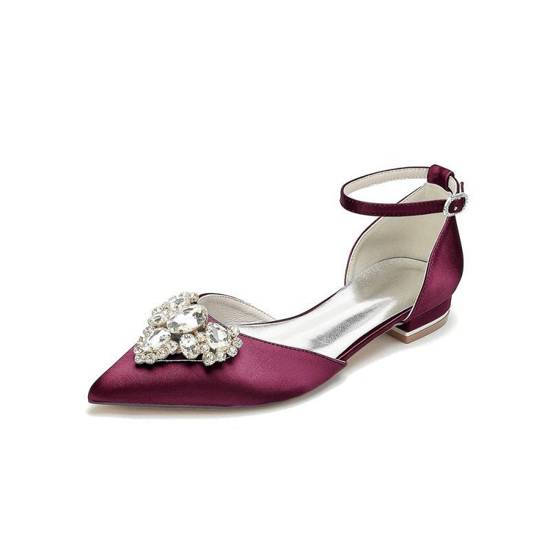 Elevate your formal attire with Satin Pointed Toe Ankle Strap Rhinestone Kitten Heels. The rhinestone embellishment adds a touch of glamour to any special occasion. Made with satin and rubber soles, these low-heeled shoes offer both comfort and style. Perfect for weddings, proms, or parties, secure your pair today.