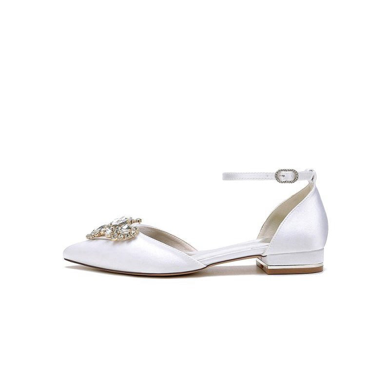 Satin Pointed Toe Ankle Strap Rhinestone Kitten Heels