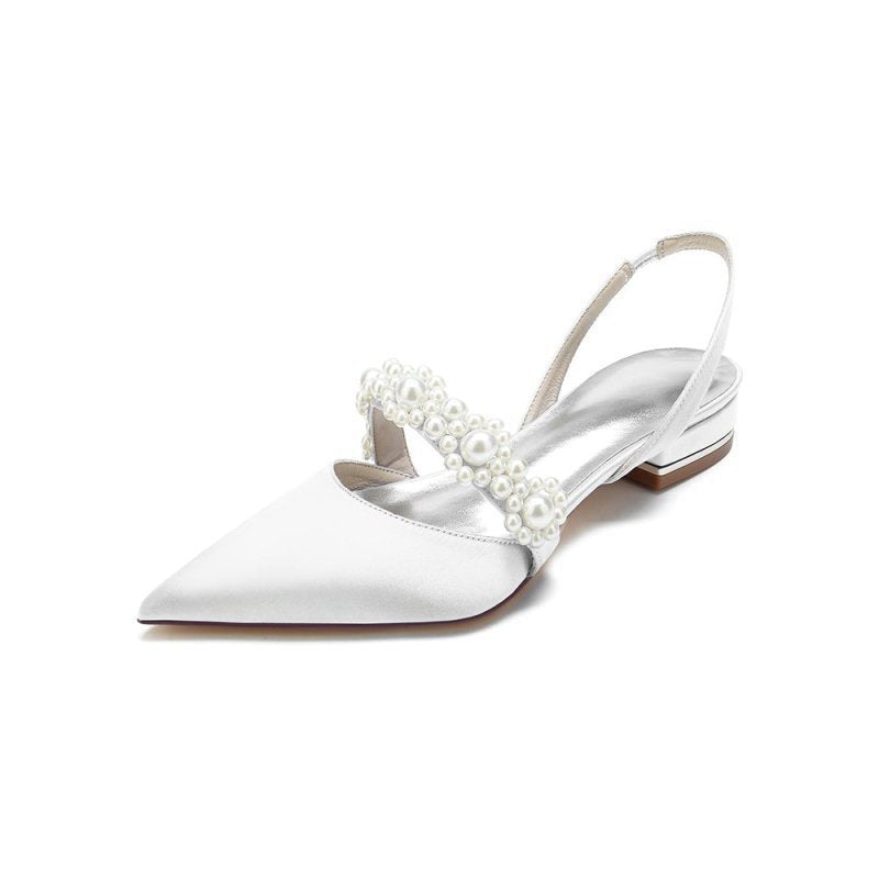 Elevate your special occasion attire with these Satin Pointed Toe Pearl Kitten Heels. Made with satin material and adorned with pearls, these low-heeled slip-on shoes offer both style and comfort. Slip-on design and rubber sole offer ease and a secure fit, making them a must-have for brides and wedding guests alike.