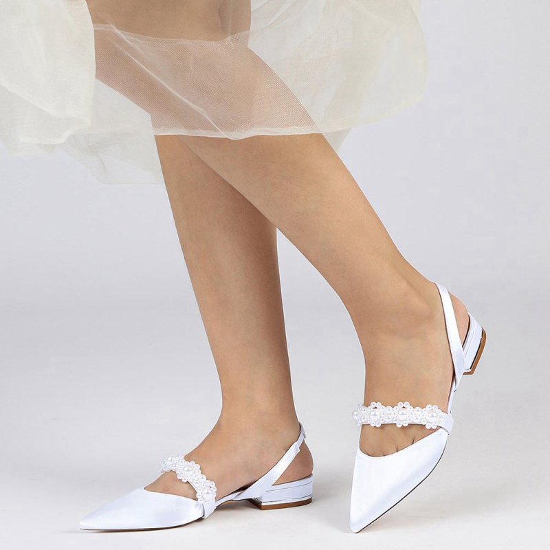 Satin Pointed Toe Pearl Kitten Heels