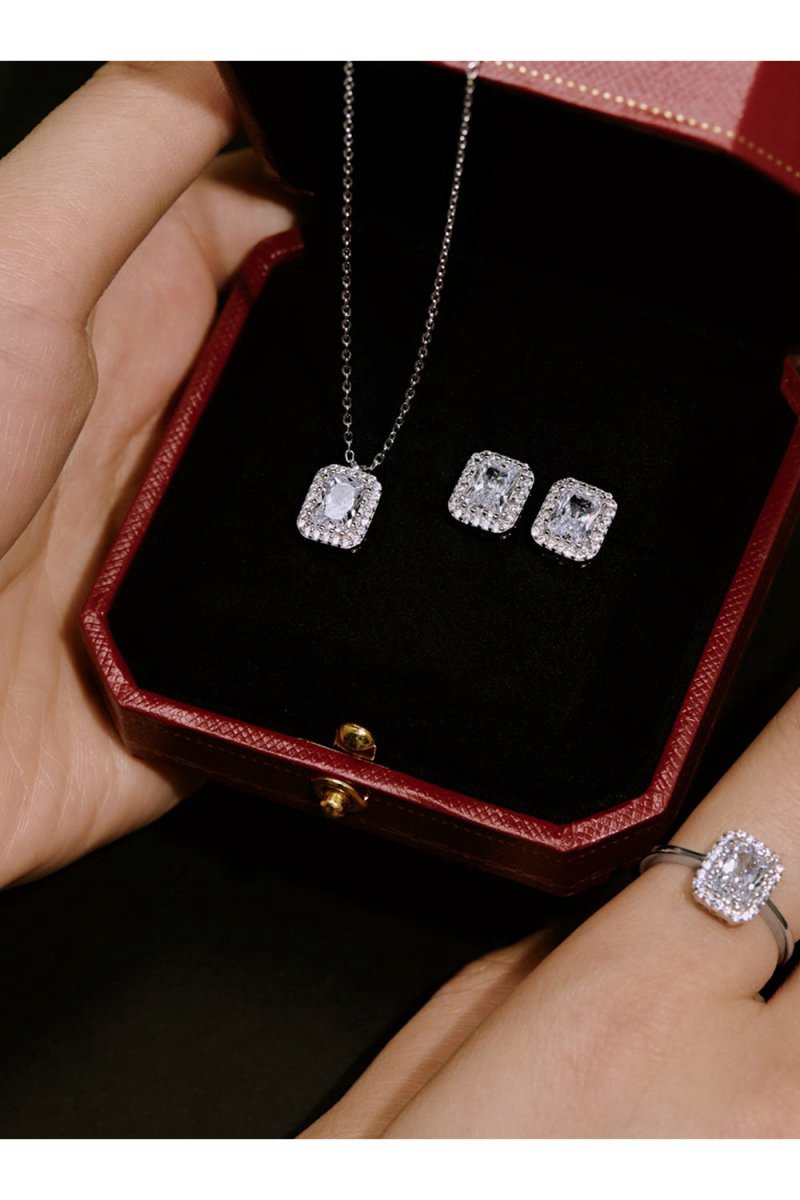 Shiny Rectangle Zircon Engagement Ring Sterling Silver