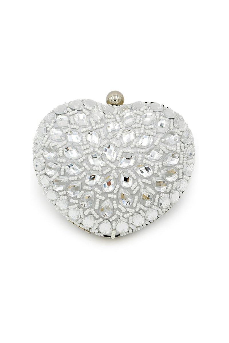 Silver Beaded Heart Shaped Party Clutch
