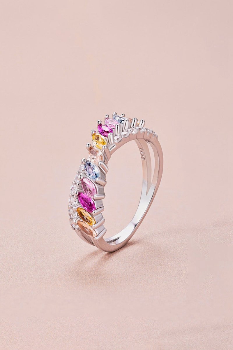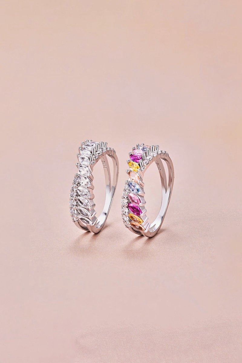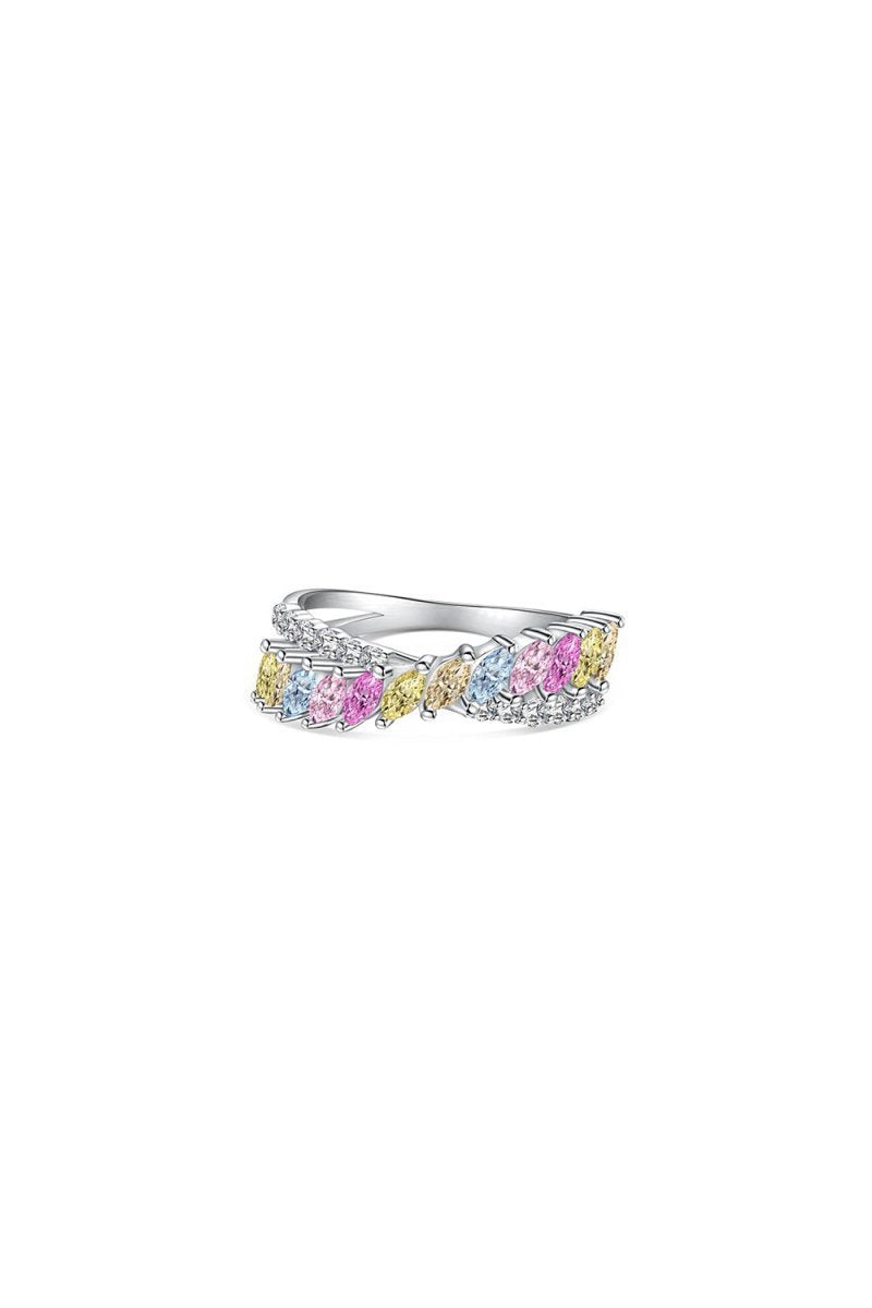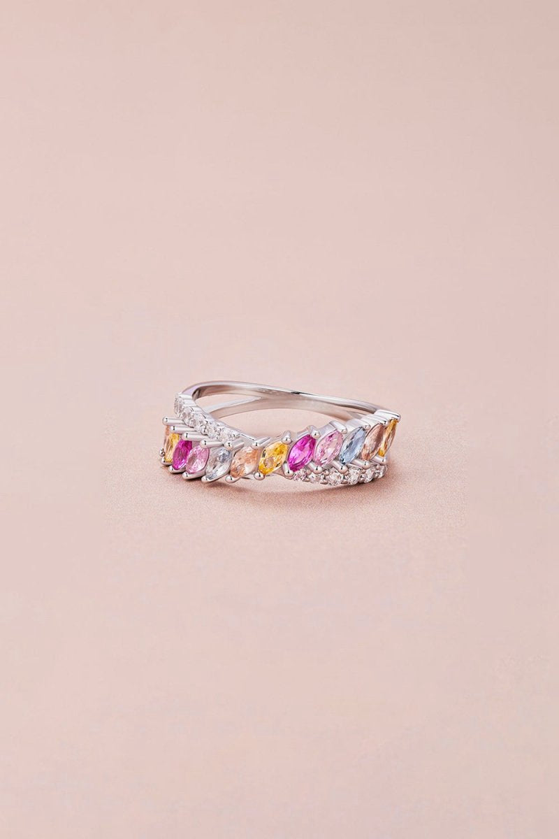 Silver Cross Shaped 5A Cubic Zirconia Colorful Agate Twisted Ring