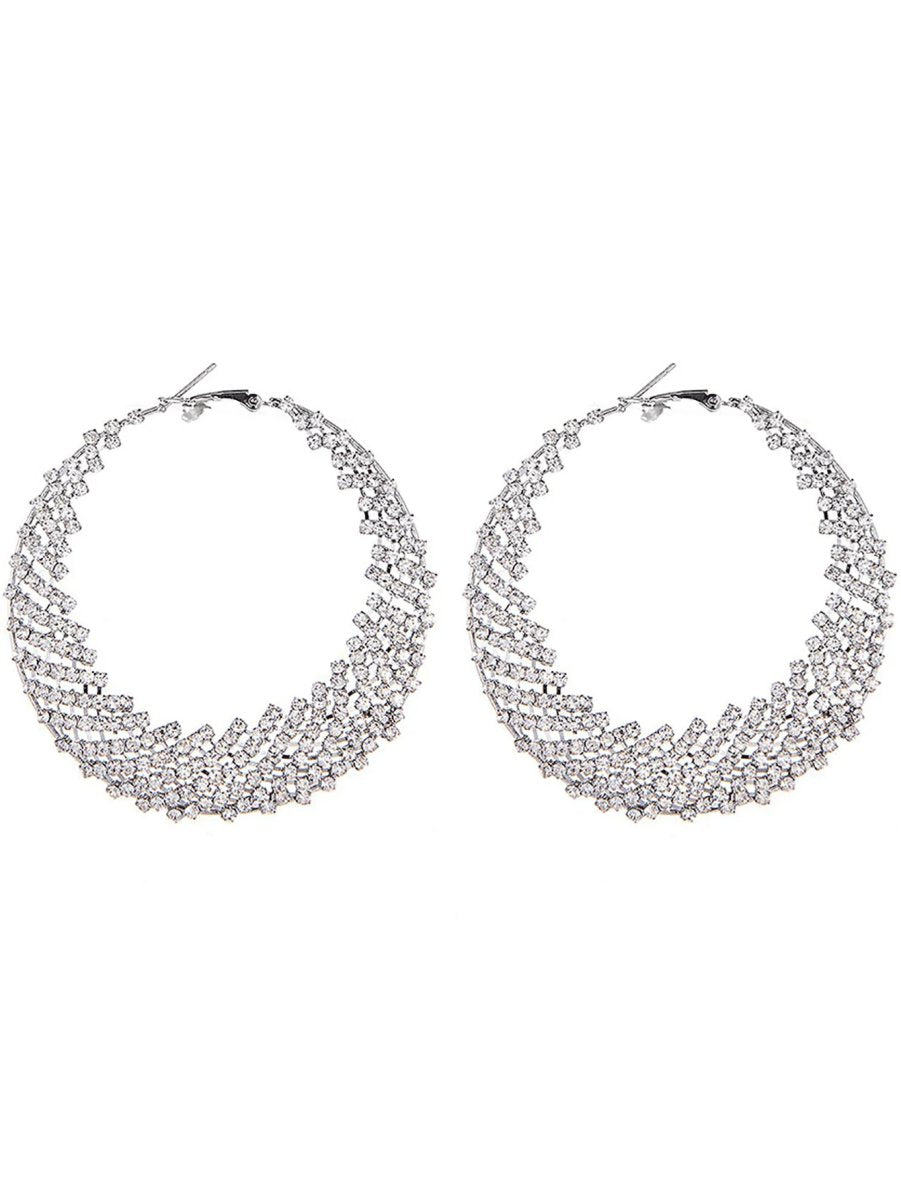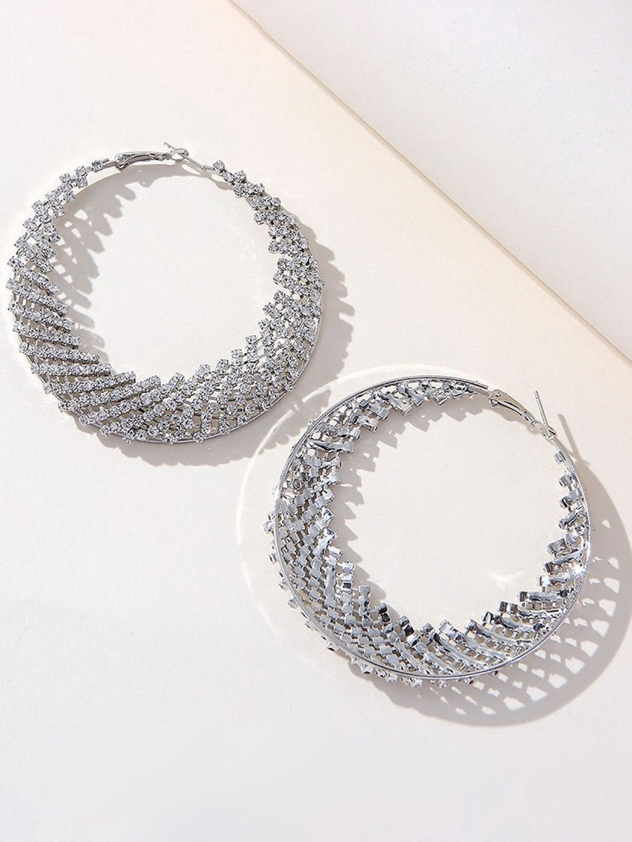 Silver Rhinestones Cutout Hoop Earrings