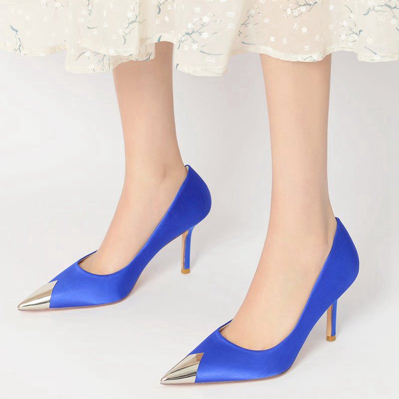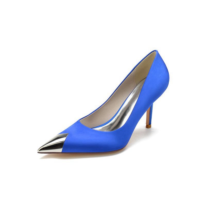 Elevate your look with these Simple Cocktail Metallic Pointed Toe High Heels, designed to make a statement at your wedding or prom. With a stunning metallic pointed toe embellishment and a stiletto heel height of 8.5 cm, they add a touch of elegance and glamour. And the faux silk upper material and imitation pigskin sole ensure comfort. These heels will have you stepping into the spotlight with confidence, perfect for any glamorous occasion.