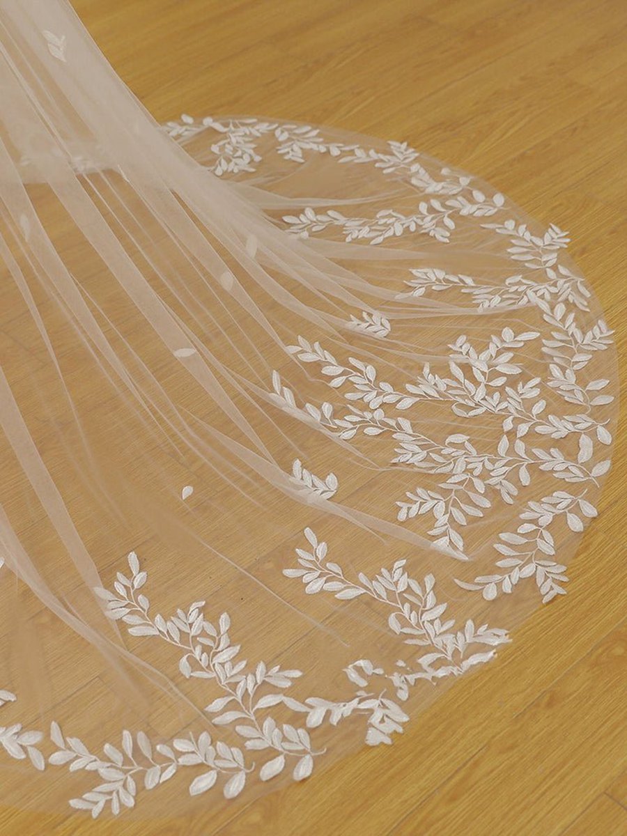 Simple Leaves Lace Chapel Train Veil Bridal Veil Wedding Veil