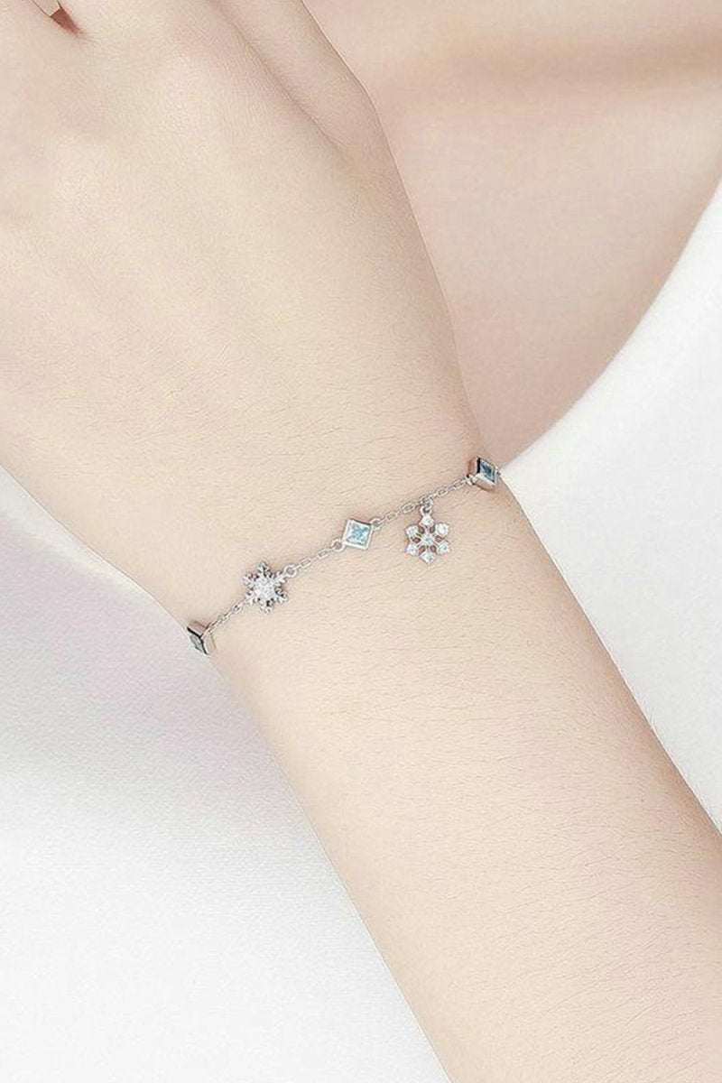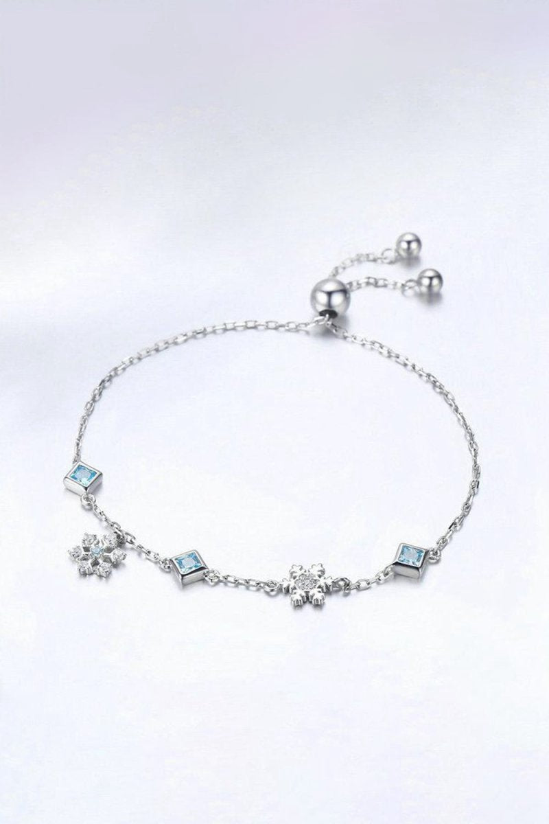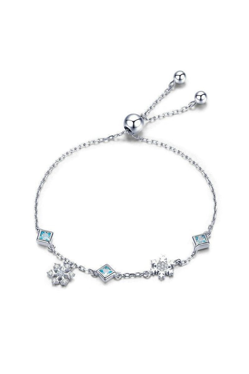 Exquisitely shaped snowflakes inlaid with many sparkling zircons make the bracelet look fashionable and graceful. This white gold plated Snowflower sterling silver bolo bracelet brings beauty and elegance to your look. The snowflake is a symbol of purity and beauty. Beauty without impurities is intoxicating and breathtaking.