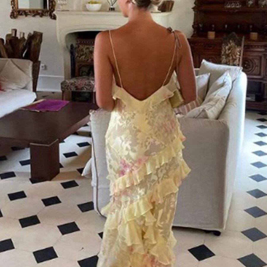 Step into the spotlight with the Yellow Spaghetti Straps Mermaid Long Prom Dress with Ruffles. This stunning mermaid-style dress is designed to flatter your curves and highlight your elegance at any formal event. Crafted from luxurious chiffon fabric, the dress offers both sophistication and comfort, ensuring you look and feel fabulous all night long. The spaghetti straps and sleeveless design create a sleek and contemporary look, while the deep, open back with a Lace-up closure ensures a perfect fit tailored to your shape. The vibrant yellow color radiates confidence and energy, making this dress the perfect choice for those who want to stand out. What truly sets this dress apart is the exquisite ruffles that cascade down the skirt, adding volume and movement for a dramatic, eye-catching effect. Elevate your wardrobe with this dress, an exquisite option for both evening dresses and formal dresses.