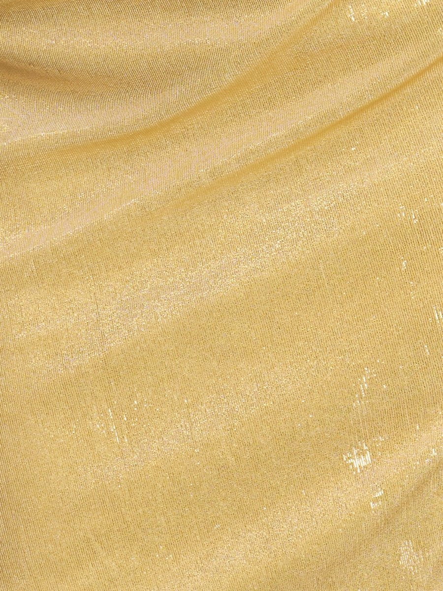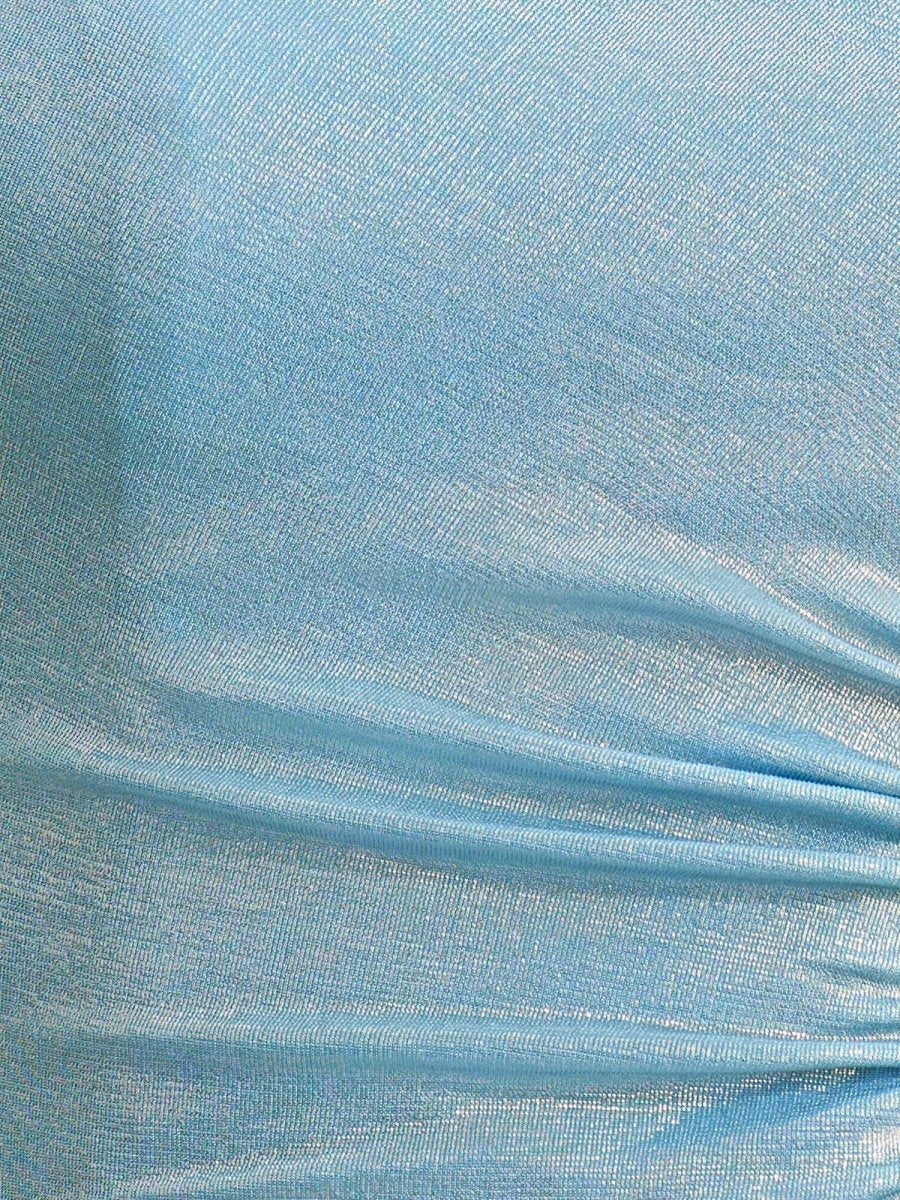A stunning A-line piece perfect for any special occasion. This A-line dress is crafted from shimmering metallic fabric in a striking blue and yellow color. The one-shoulder neckline adds a touch of sophistication to this dress, while a daring side slit brings a modern edge. The backless design ensures a customizable fit, making it a standout choice for any special occasion.