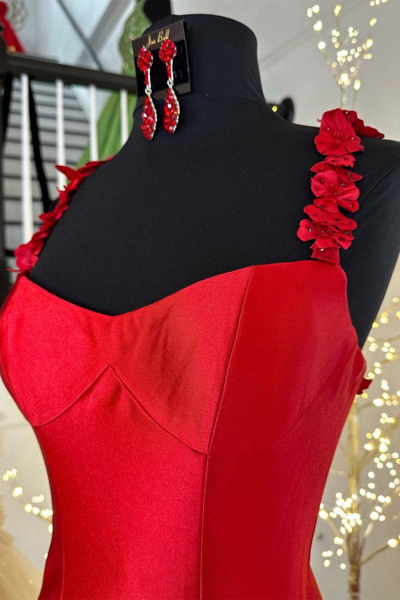 Unleash your inner goddess with The | Black Straps Floral Mermaid Long Prom Dress. This stunning dress features a captivating mermaid silhouette that gracefully hugs your curves and flows into a sweep train, creating a dramatic effect as you move. The luxurious satin fabric offers a soft, elegant sheen, making it perfect for any formal occasion. It is available in classic black and vibrant red, which allows you to express your unique style. The eye-catching floral embellishments add a touch of romance, while the daring slit introduces an element of allure, giving you the confidence to make a statement. The tie-back ensures a perfect fit, allowing you to dance the night away with ease. Whether you're attending prom, a gala, or any special event, The | Black Straps Floral Mermaid Long Prom Dress is the ideal choice for those seeking to turn heads and leave a lasting impression.