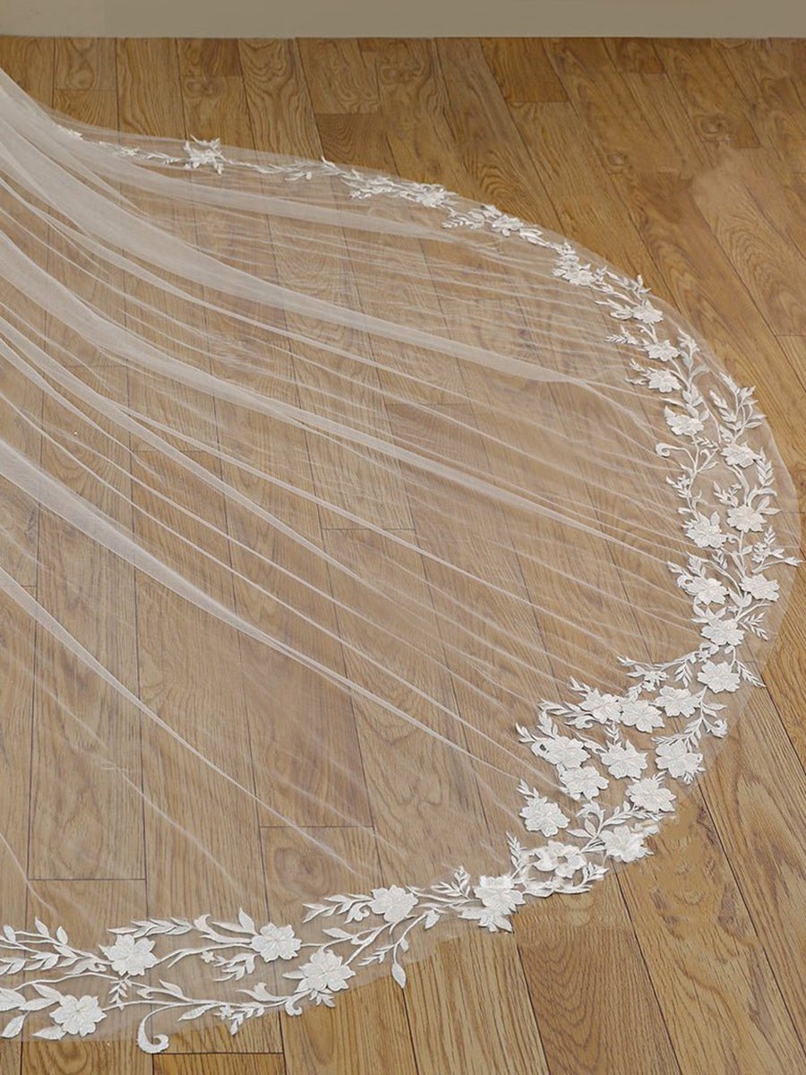 Stunning Flower Lace Cathedral Veil Bridal Veil Wedding Veil