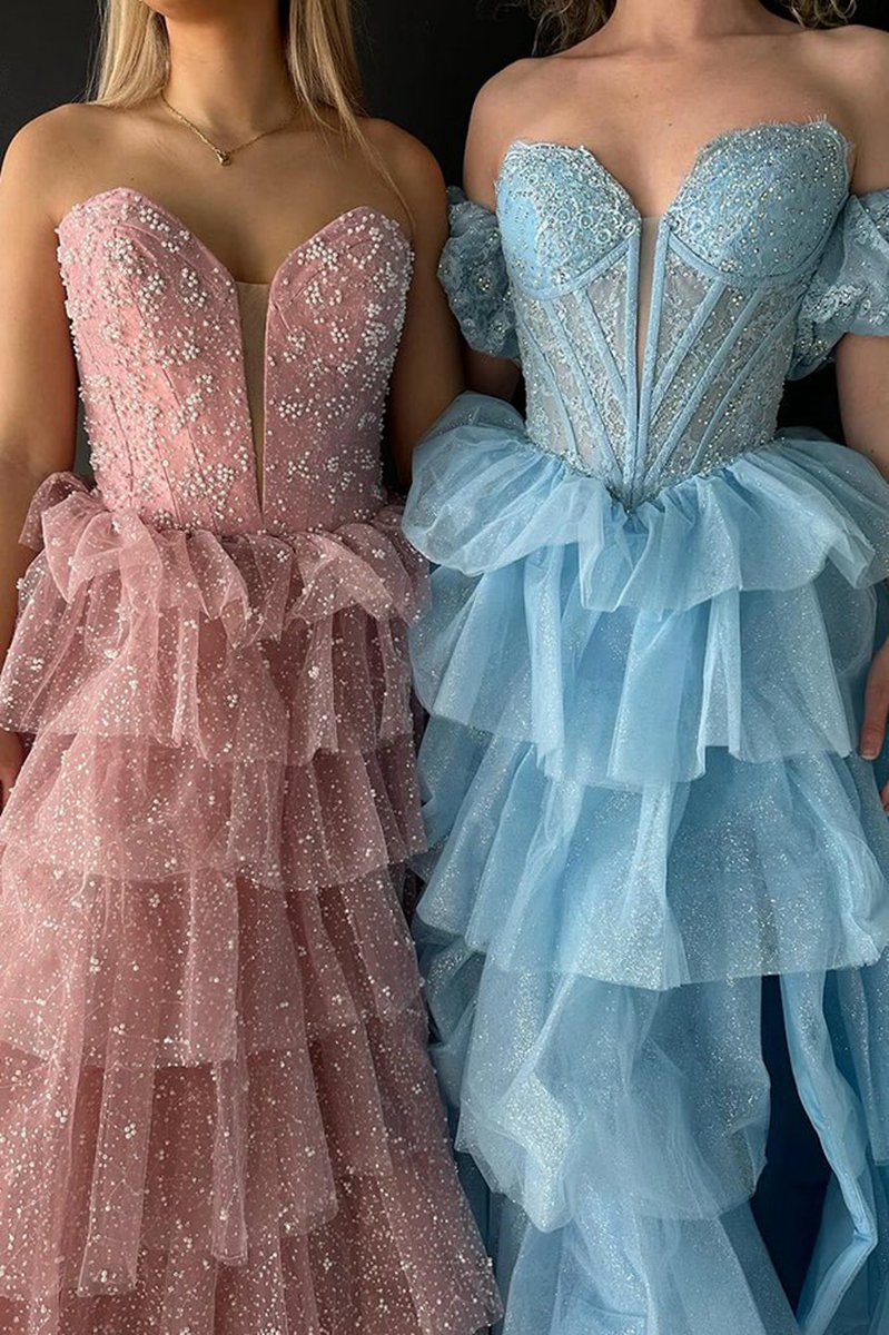 Dressmarkets Sweetheart A-line Lace Layered Dresses with Slit