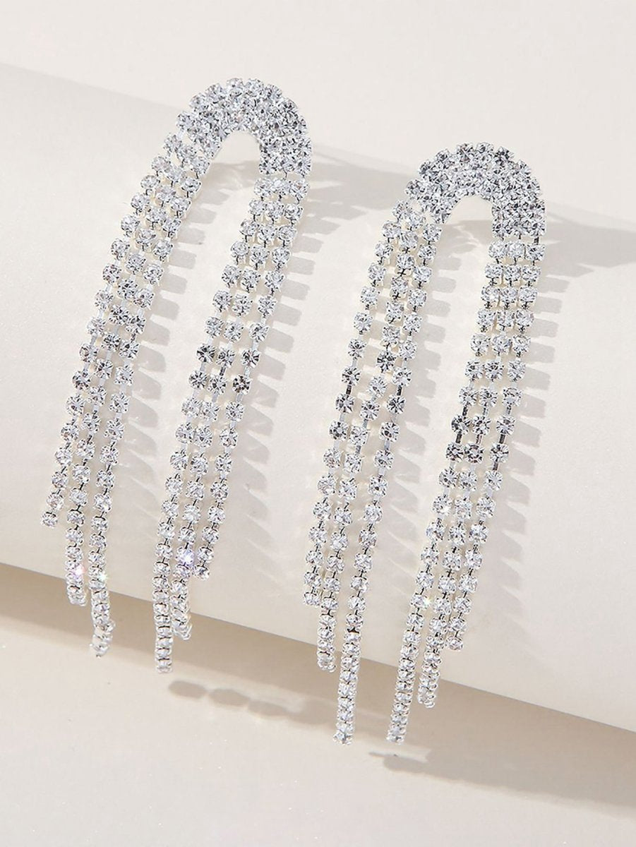Tassel Silver Rhinestones Long Chain Earrings