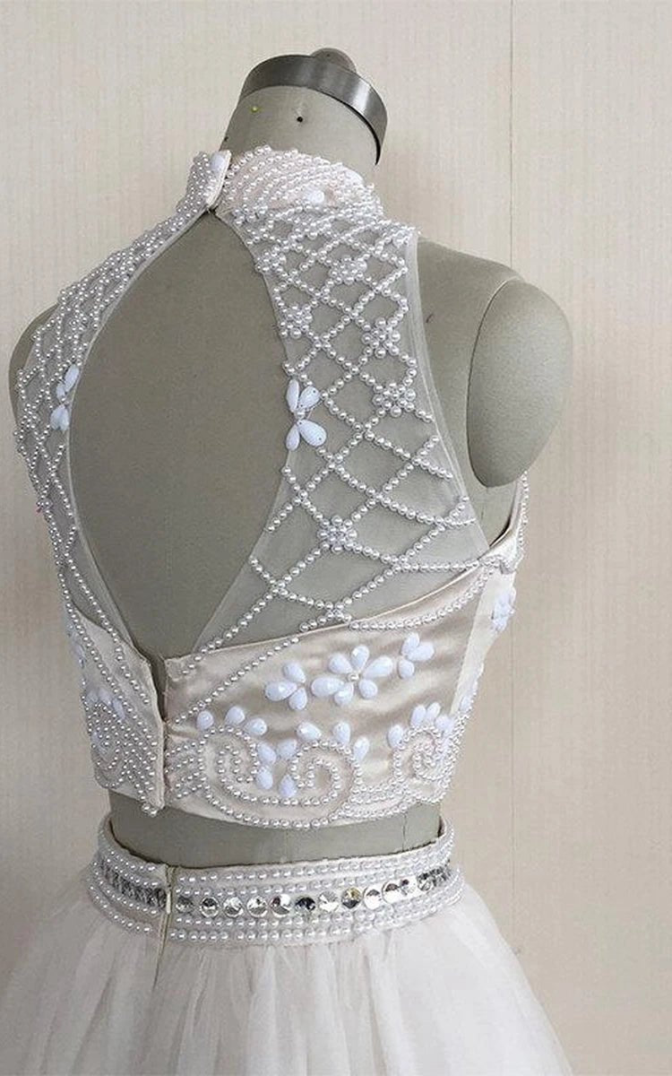 Dressmarkets Two Piece High Neck Sleeveless Tulle Dresses with Beading