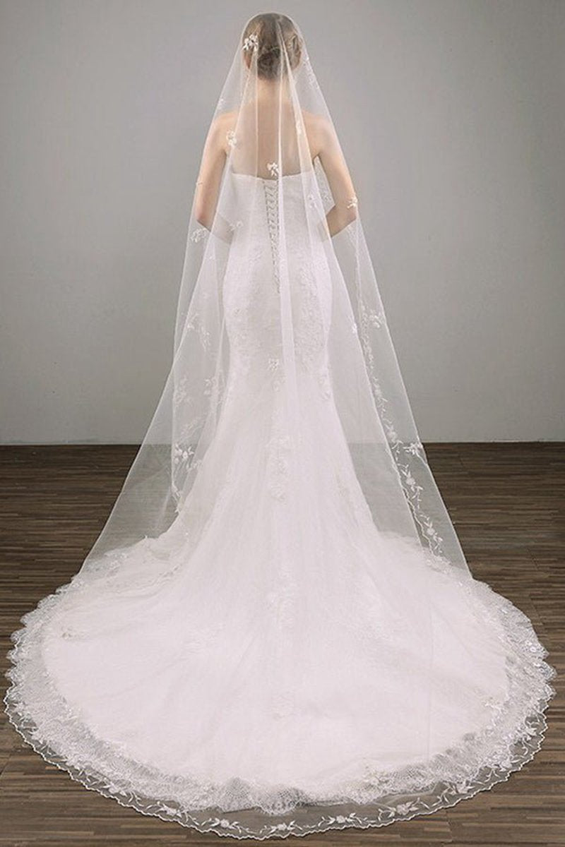 Two Tier Lace Appliques Edge Cathedral Veil Long Wedding Veil