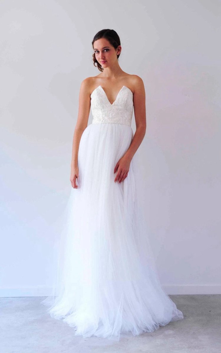 Dressmarkets V Neck Sleeveless A-line Long Tulle Backless Wedding Dresses